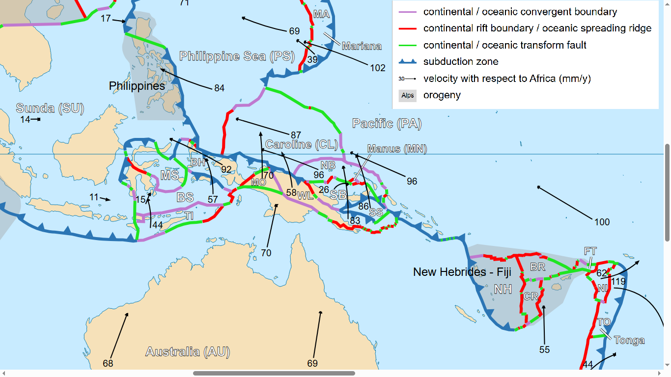 The Solomon Sea microplate (SS), between the Woodlark plate, the South Bismark Plate and the Pacific Plate.
